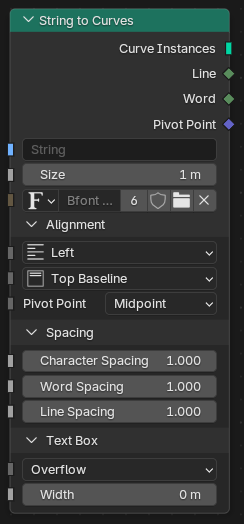 String to Curves(文字列のカーブ化)ノードが複数の方法で改善され、モーショングラフィックスのテンプレート構築に非常に便利になりました。最も重要なことは、フォントが新しいソケットタイプになるなど、すべての入力がソケットとして公開されたことです。